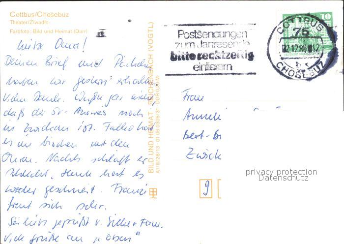 71975677 alte Postkarte Cottbus Theater postalisch gelaufen Erhaltung siehe scans KatCode: 11110012052000