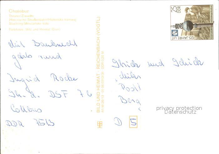 72461714 alte Postkarte Cottbus Theater Historische Strassenbahn postalisch gelaufen Erhaltung siehe scans KatCode: 11110012052000