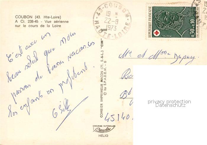 13577890 carte postale Coubon Vue aerienne sur le cours de la Loire postalisch gelaufen Erhaltung siehe scans [WerneD78] KatCode: 11170043243078