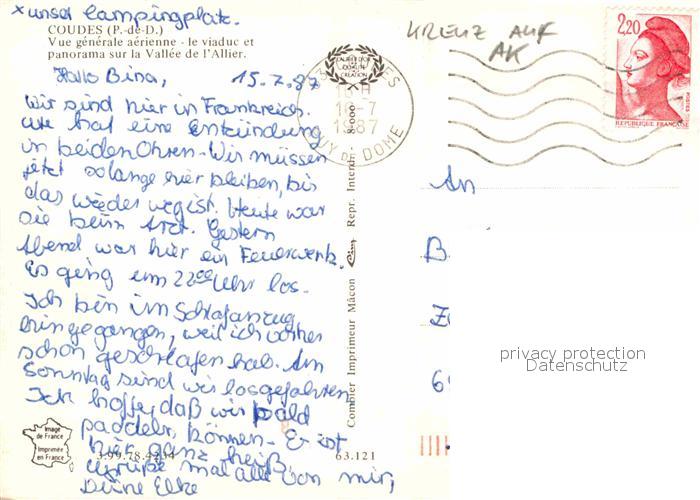 12619479 carte postale Coudes Vue generale aerienne Viaduc Vallee de l’Allier postalisch gelaufen Erhaltung siehe scans [FriedD77] KatCode: 11170063363121