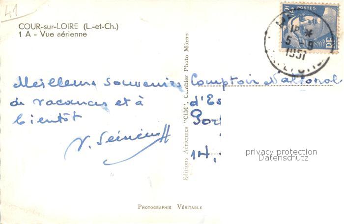 13744525 Cour-sur-Loire Vue aerienne postalisch gelaufen Erhaltung siehe scans [WerneD78] carte postale Wern Katcode 11170041141069