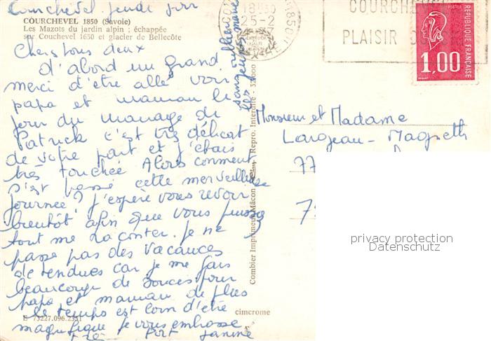 13786332 Courchevel Les Mauots du jardin alpin echappee sur Couchevel et glacier de Bellecote postalisch gelaufen Erhaltung siehe scans [WerneD78] carte postale Wern Katcode 11170073173227