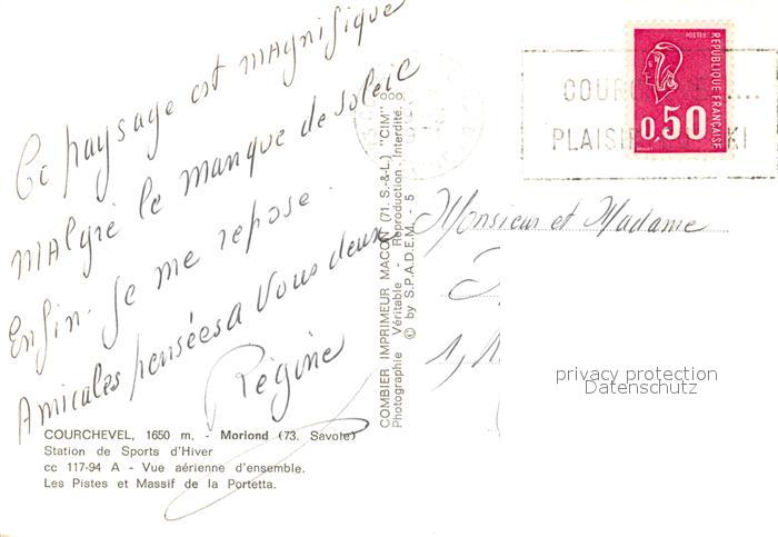 13071732 carte postale Courchevel Mariond Station de Sports d’Hiver Vue aerienne Les Pistes et Massif de la Porletta postalisch gelaufen Erhaltung siehe scans [WerneD78] KatCode: 11170073173227
