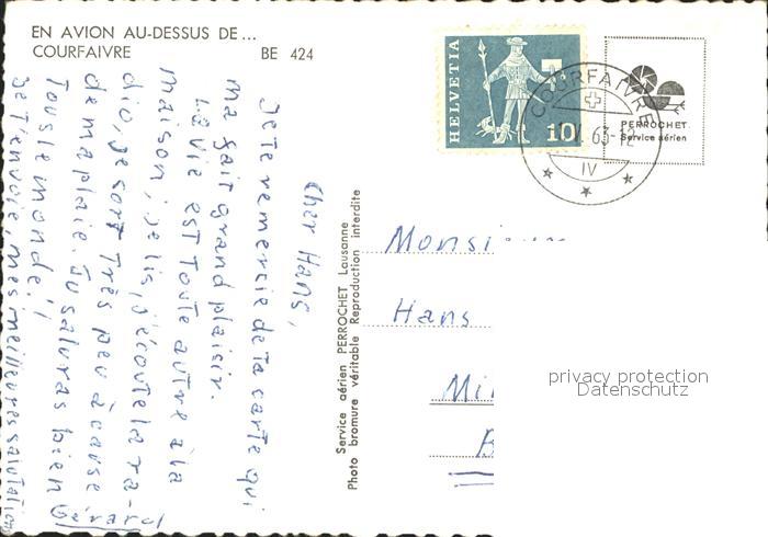 11644724 alte Postkarte Courfaivre Vue aerienne postalisch gelaufen Erhaltung siehe scans KatCode: 11470110360578