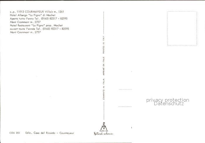 Courmayeur Hotel Albergo La Pigno postalisch nicht gelaufen Erhaltung siehe scans
