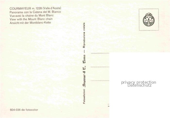 74034252 Courmayeur Valle d Aosta IT Panorama con la Catena del Monte Bianco postalisch nicht gelaufen Erhaltung siehe scans [FriedD77] KatCode: 11240