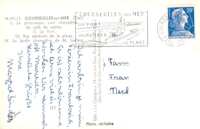 13879405 Courseulles-sur-Mer 14 Calvados La pittoresque cour champetro du cafe du centre Le Port Vue generale de la plage Le jardin champetre de M Leclerc postalisch gelaufen Erhaltung siehe scans [WerneD78] carte postale Wern Katcode 11170014214191