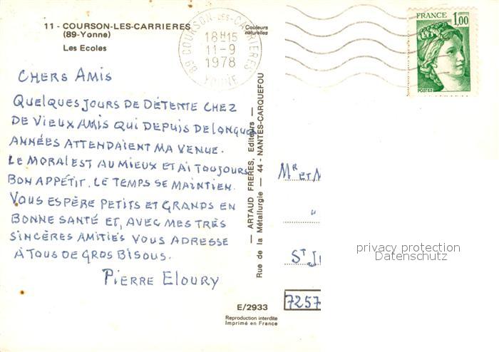 13586299 Courson-les-Carrieres Les écoles postalisch gelaufen Erhaltung siehe scans [FriedD77] carte postale Frie Katcode 11170089189125