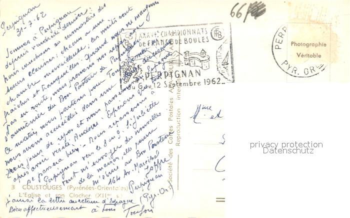 13535367 carte postale Coustouges Eglise et son clocher XIIe siècle postalisch gelaufen Erhaltung siehe scans [FriedD77] KatCode: 11170066166061