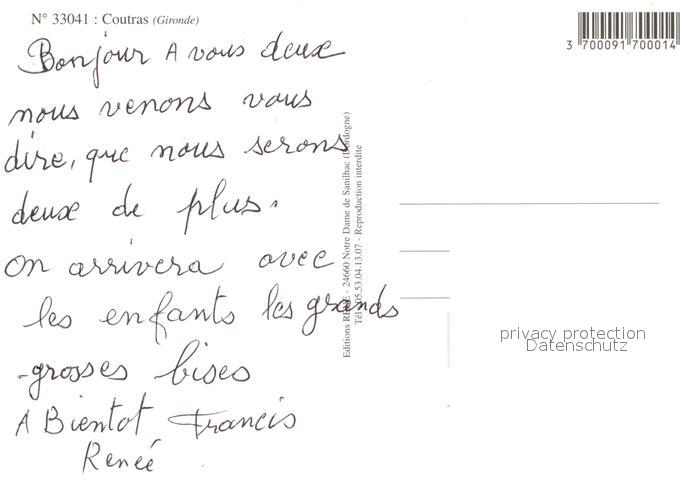 13586529 Coutras postalisch nicht gelaufen Erhaltung siehe scans [PaolaD17] Paol Katcode 11170033533138