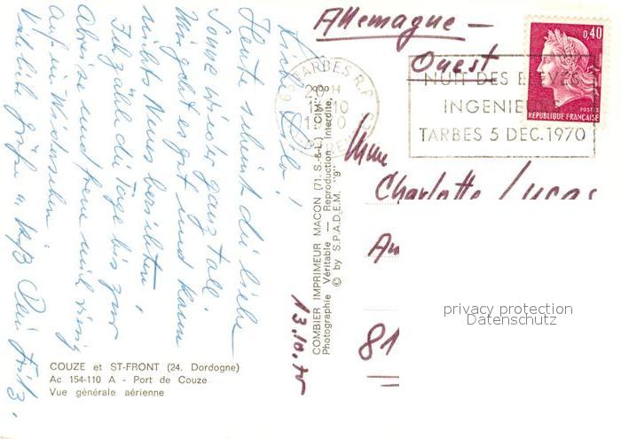 13252913 carte postale Couze-et-Saint-Front Fliegeraufnahme Port de Couze postalisch gelaufen Erhaltung siehe scans [NatalD47] KatCode: 11170024124143