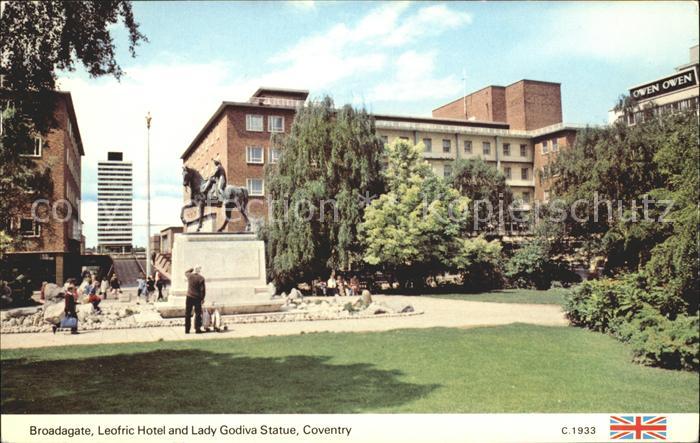 old postcard Coventry Broadagate Leofric Hotel Lady Godiva Statue postalisch gelaufen Erhaltung siehe scans