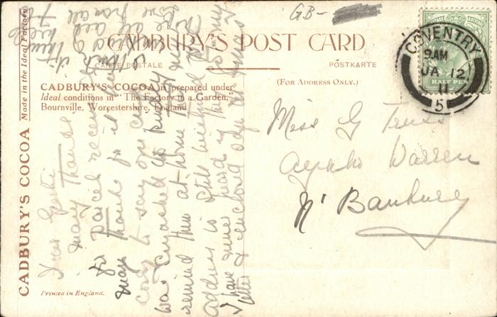 11474649 old postcard Coventry Cadburys Cocoa postalisch gelaufen Erhaltung siehe scans KatCode: 11570UKG3G33CQ