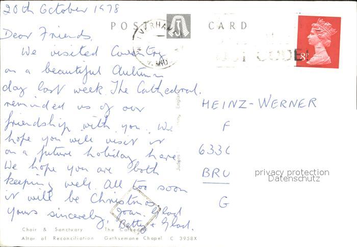 old postcard Coventry Cathedral postalisch gelaufen Erhaltung siehe scans