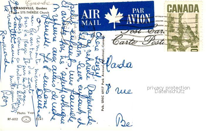 old postcard Cowansville Quebec Eglise Ste Therese postalisch gelaufen Erhaltung siehe scans [FriedD77]