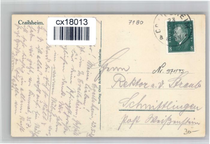 30725658 alte Postkarte Crailsheim anno 1838 postalisch gelaufen KatCode: 11110008127014