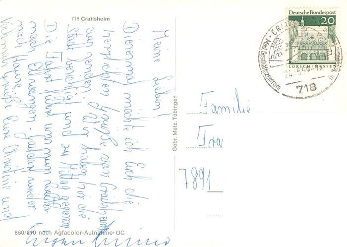 73899150 alte Postkarte Crailsheim Stadtansicht postalisch gelaufen Erhaltung siehe scans [FriedD77] KatCode: 11110008127014