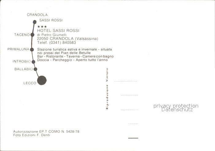Crandola Valsassina Hotel Sassi Rossi postalisch nicht gelaufen Erhaltung siehe scans