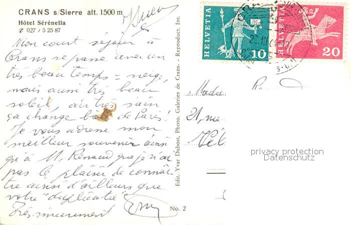 13601784 alte Postkarte Crans-Montana Hotel Serenella postalisch gelaufen Erhaltung siehe scans [LiesaD40] KatCode: 11470230740630