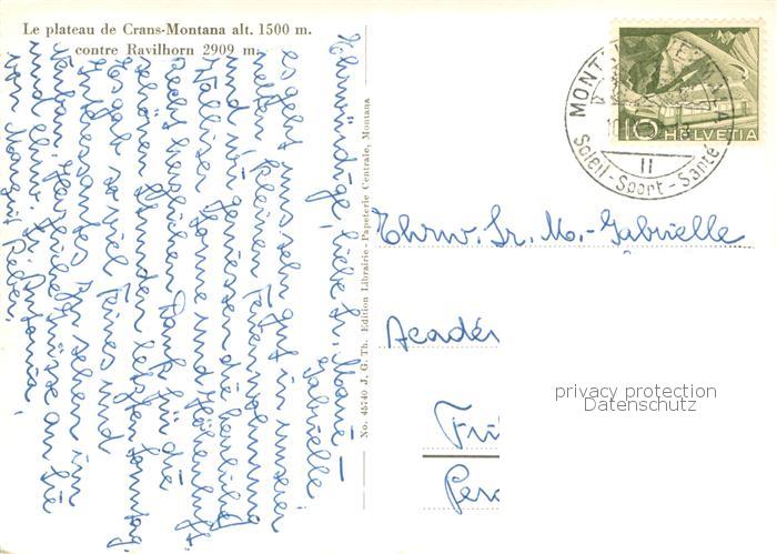 13751378 alte Postkarte Crans-Montana Le plateau contre Ravilhorn postalisch gelaufen Erhaltung siehe scans [FriedD77] KatCode: 11470230740630