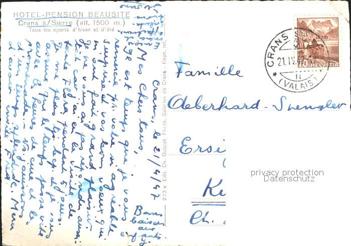 11646997 alte Postkarte Crans-sur-Sierre Hotel Pension Beausite postalisch gelaufen Erhaltung siehe scans KatCode: 11470230740630