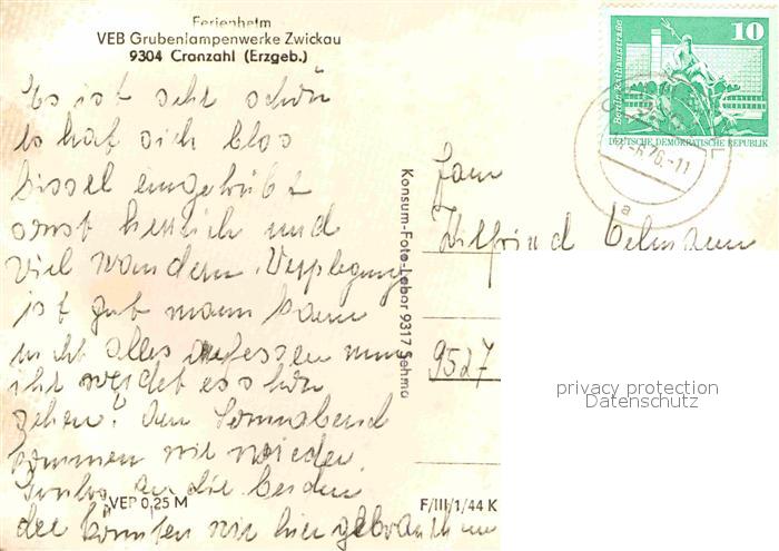 72703394 alte Postkarte Cranzahl Ferienheim VEB Grubenlampenwerke Zwickau postalisch gelaufen Erhaltung siehe scans [FriedD77] KatCode: 11110014171295