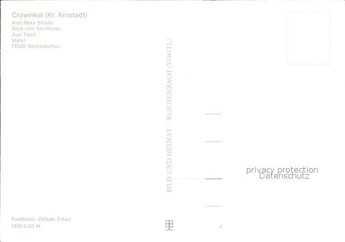 72135847 Crawinkel Karl Marx Strasse Blick vom Kirchturm Aue Teich Markt FDGB Bezirksschule postalisch nicht gelaufen Erhaltung siehe scans KatCode: 11110016067008