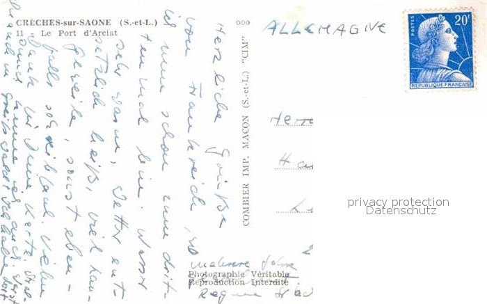 12757130 carte postale Creches-sur-Saone Le Port d Arciat postalisch gelaufen Erhaltung siehe scans [FriedD77] KatCode: 11170071571150