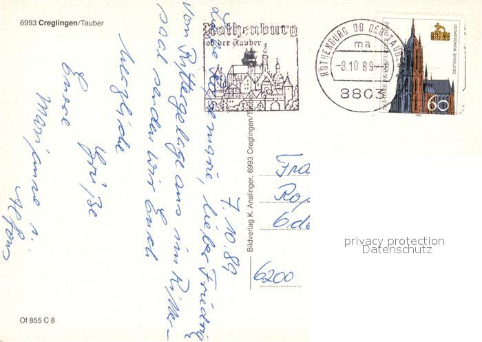 73230314 alte Postkarte Creglingen Riemenschneider Altar postalisch gelaufen Erhaltung siehe scans [NatalD47] KatCode: 11110008128020