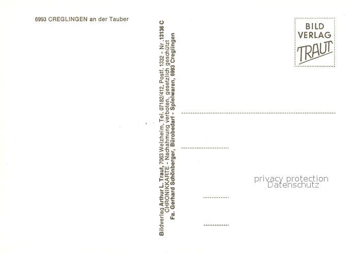 73182523 Creglingen Schlosserturm Fachwerk an der Apotheke Erker Kirche Tauber Bruecke Chronik Wappen postalisch nicht gelaufen Erhaltung siehe scans [FriedD77] KatCode: 11110008128020