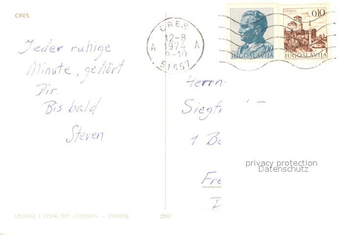 old postcard Cres Croatia Hafen Altstadt postalisch gelaufen Fliegeraufnahme Erhaltung siehe scans [FriedD77]