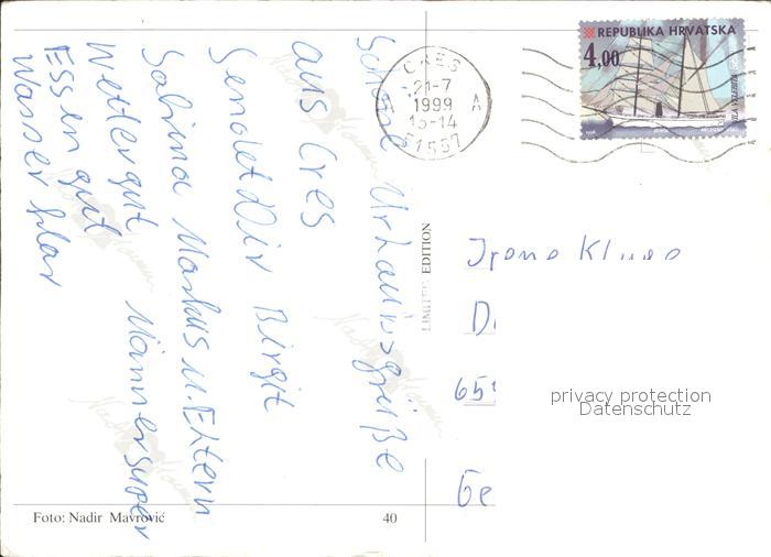old postcard Cres Fliegeraufnahme postalisch gelaufen Erhaltung siehe scans