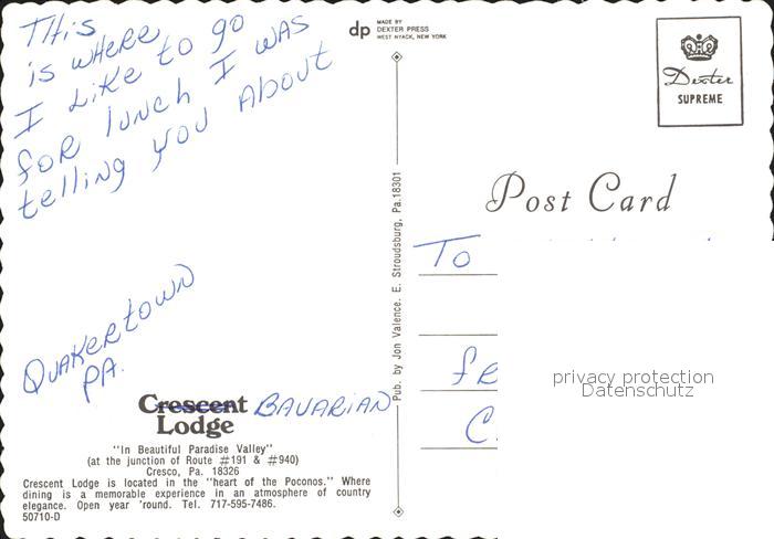 72050343 Cresco Pennsylvania Crescent Lodge Dining Room Lounge Salad Bar postalisch nicht gelaufen Erhaltung siehe scans KatCode: 14140410000000