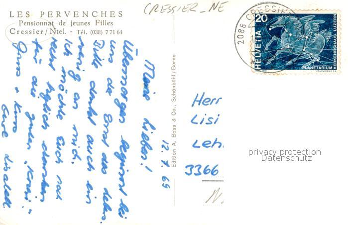 13760227 alte Postkarte Cressier NE Pensionnat de jeunes Filles Les Pervenches postalisch gelaufen Erhaltung siehe scans [LiesaD40] KatCode: 11470130420140