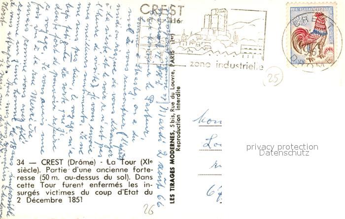 13498212 carte postale Crest La Tour XIe siècle ancienne forteresse postalisch gelaufen Erhaltung siehe scans [FriedD77] KatCode: 11170026126108