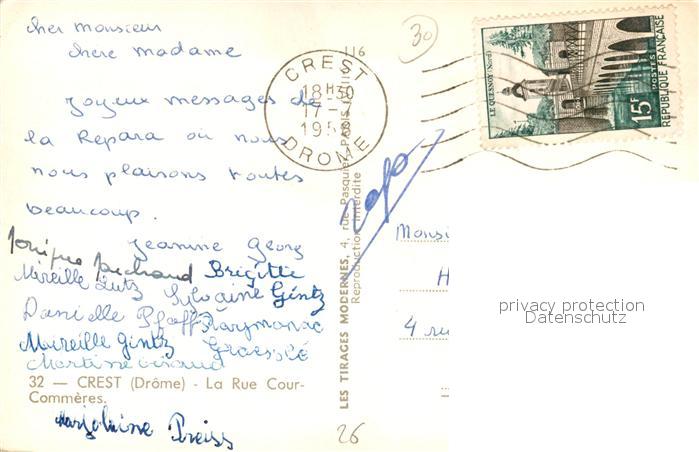 13498216 carte postale Crest Rue Cour Commères postalisch gelaufen Erhaltung siehe scans [FriedD77] KatCode: 11170026126108