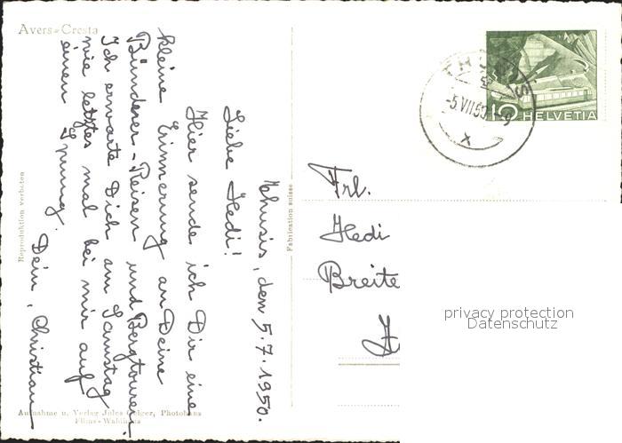 11631090 alte Postkarte Cresta Avers Teilansicht postalisch gelaufen Erhaltung siehe scans KatCode: 11470100315026