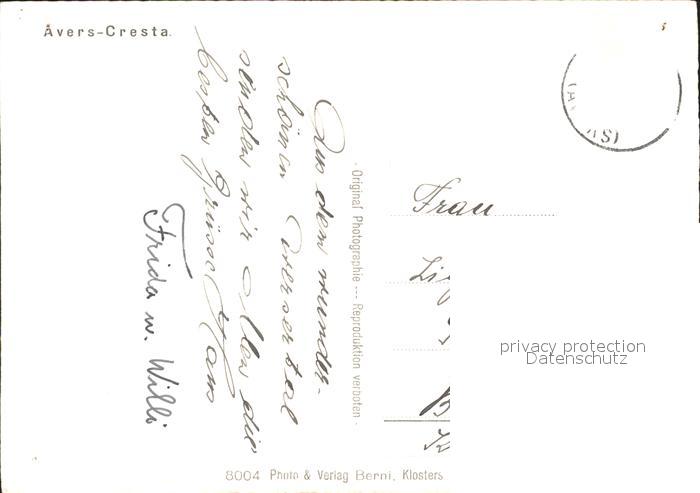 11649154 alte Postkarte Cresta Avers postalisch gelaufen Erhaltung siehe scans KatCode: 11470100315026