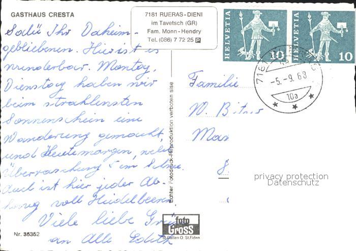 11634230 alte Postkarte Cresta Celerina Gasthaus postalisch gelaufen Erhaltung siehe scans KatCode: 11470100335214