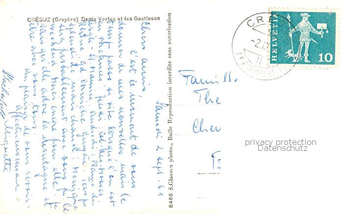 13792430 alte Postkarte Cresuz Dents Vertes et les Gastlosen postalisch gelaufen Erhaltung siehe scans [LiesaD40] KatCode: 11470070265136