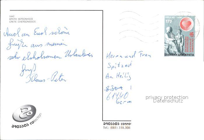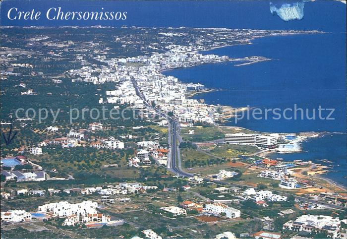 old postcard Crete Kreta Chersonnisos Fliegeraufnahme postalisch gelaufen Erhaltung siehe scans