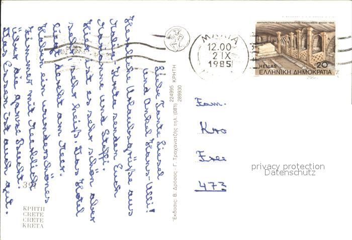 old postcard Crete Kreta Festung Alter Hafen Fischkutter Strand postalisch gelaufen Erhaltung siehe scans