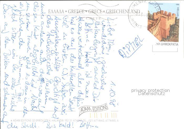 old postcard Crete Kreta Palast von Knossos Hafen Wandmalerei Brunnen postalisch gelaufen Erhaltung siehe scans
