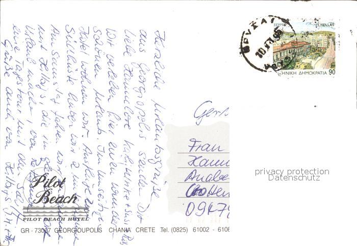 old postcard Crete Kreta Pilot Beach Hotel postalisch gelaufen Erhaltung siehe scans