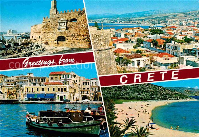 old postcard Crete Kreta Ruine Hafen Panorama Strand postalisch gelaufen Erhaltung siehe scans [WerneD78]