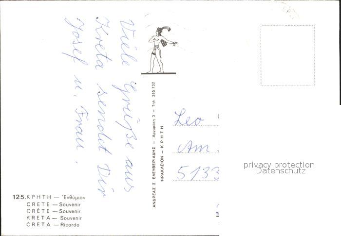 old postcard Crete Kreta Tempel Ruine Antike Krug Hafen Strand postalisch gelaufen Erhaltung siehe scans