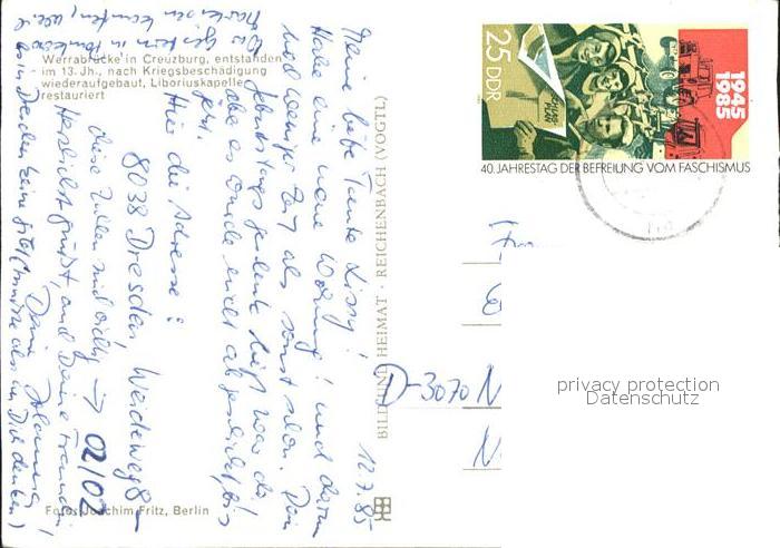 72273359 alte Postkarte Creuzburg Werrabruecke postalisch gelaufen Erhaltung siehe scans KatCode: 11110016063013