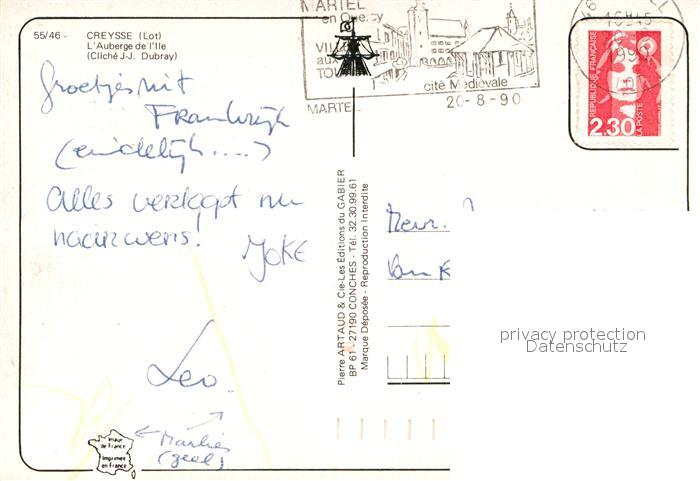 12961056 carte postale Creysse Lot Auberge de l’Ile postalisch gelaufen Erhaltung siehe scans [FriedD77] KatCode: 11170046346084