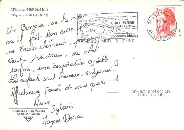 11991389 carte postale Criel-sur-Mer Kirche Strand Schwimmbad postalisch gelaufen Erhaltung siehe scans KatCode: 11170076176192