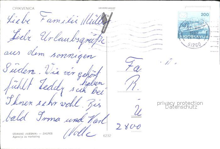 old postcard Crikvenica Kroatien Hafen Badestrand postalisch gelaufen Erhaltung siehe scans